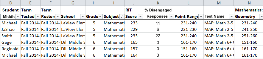 - For a meeting of all 6th grade math teachers, you could sort by the Geometry column to see which students have lower achievement in that area, across all classes.