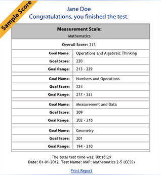 You control whether test results display on student devices when students complete their tests in the MAP system. This is a district-wide setting and is enabled by default to help involve students with their growth. If you encounter issues, however, such as students becoming overly competitive, you might disable the score display.