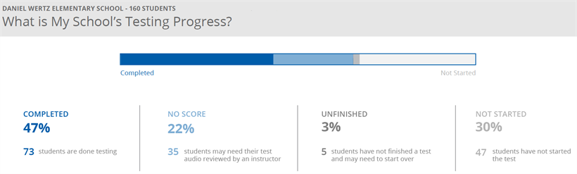 - No Score: Students who have finished a test, but their audio was unscorable; instructors may hand-score the results, or you may wish to retest